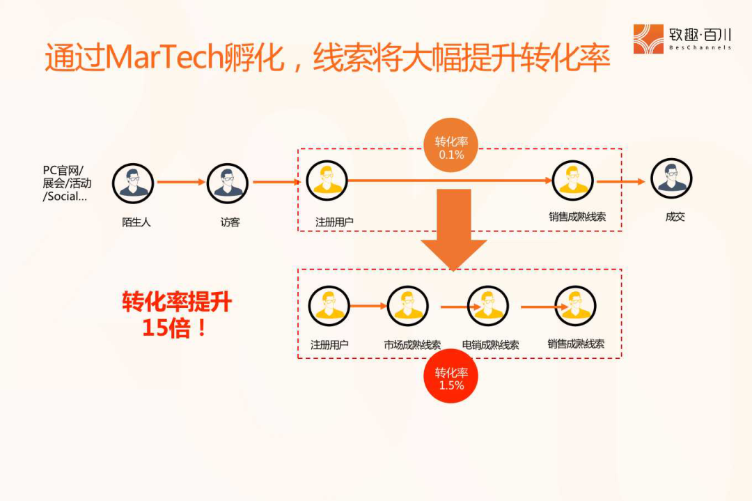 第二步,要让市场到销售的漏斗规模化起来,也是致趣百川致力于解决的问题。